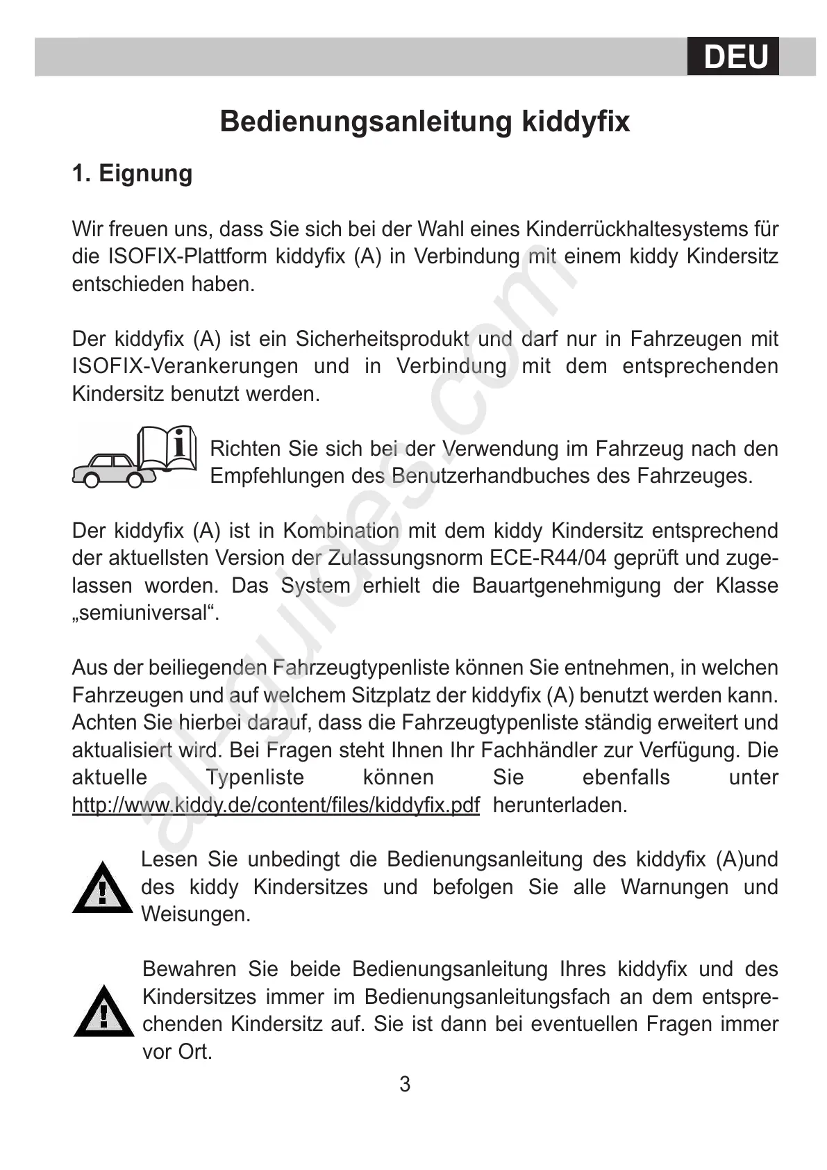Lesen Sie unbedingt die Bedienungsanleitung des kiddyfix (A)und