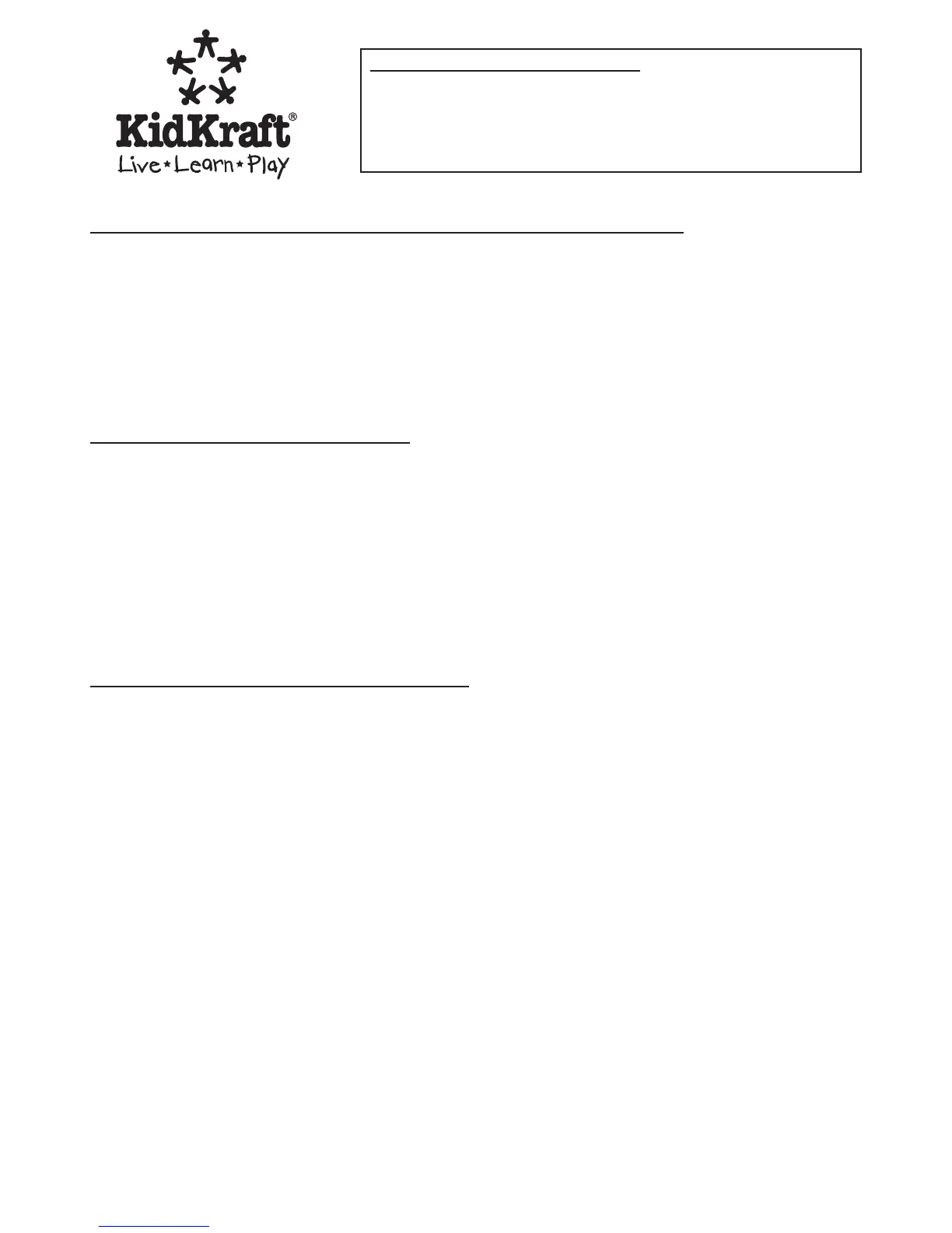 TO SUBMIT A WARRANTY CLAIM PLEASE CONTACT KIDKRAFT CUSTOMER SERVICE AT 1-800-933-0771