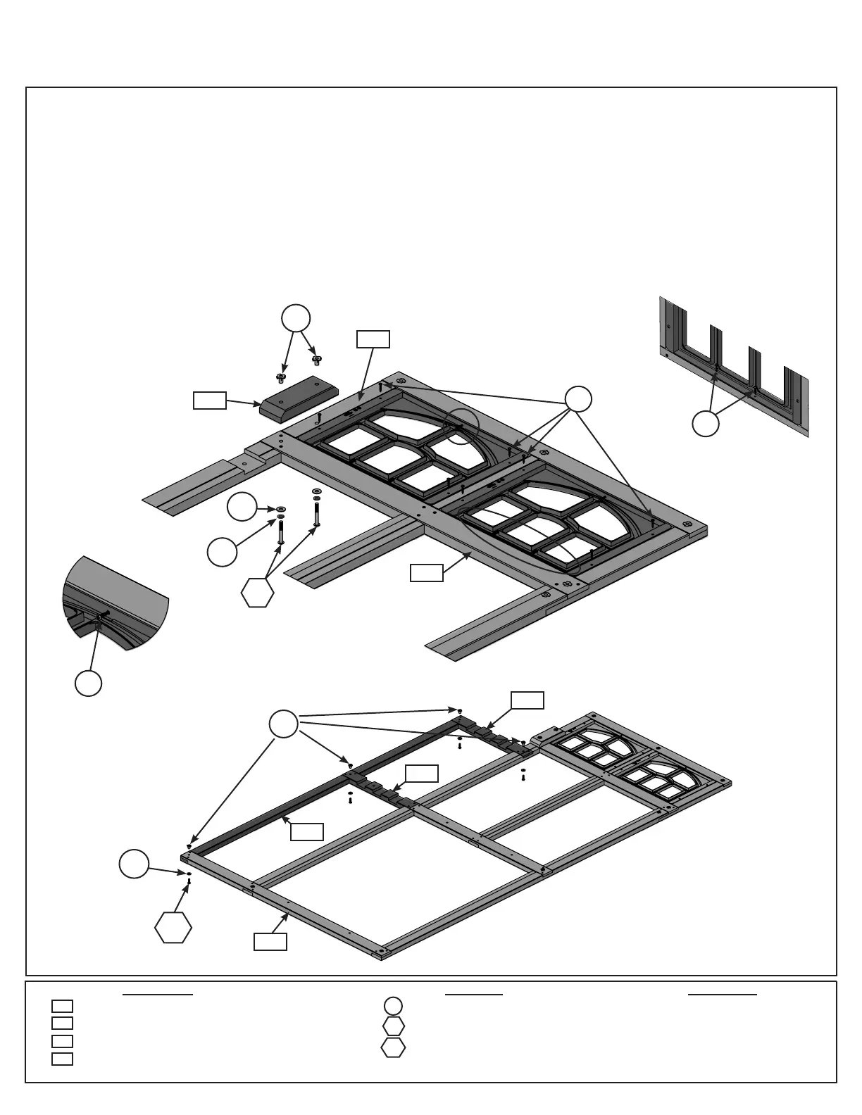 H: Place 2 MOD 5 Pane Windows in the upper openings and attach to frame assembly using 7 (S0) #8 x 7/8”