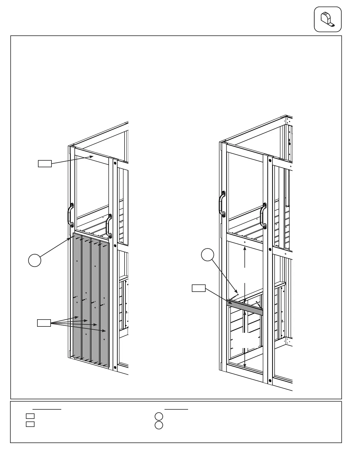 Window Bottom Spacer to each side of the (9248) Narrow Panel using 2 (S4) #8 x 3” Wood Screws, making sure to