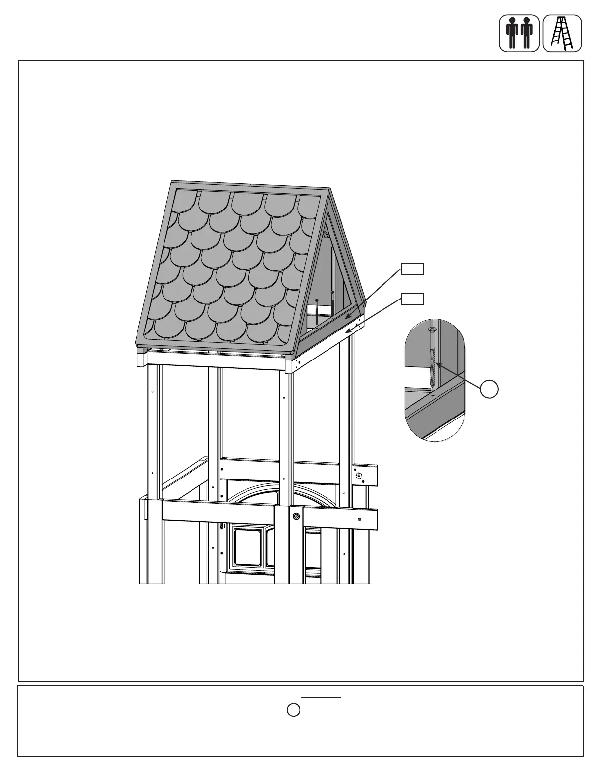 A: With a helper, lift the roof assembly and place it onto the tower assembly so that the (2853) Roof Supports