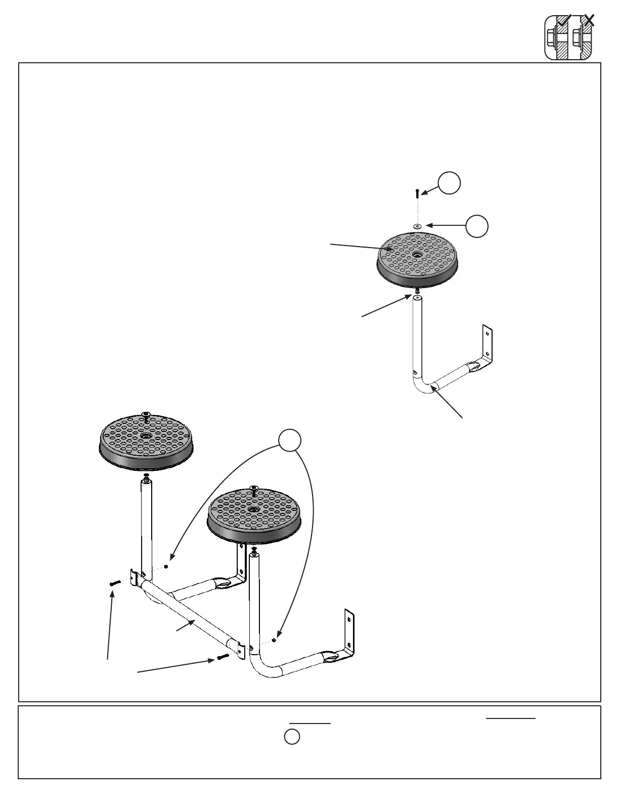 B: Keeping the Cross Brace tight to the Seat Assemblies, fasten the Cross Brace to each of the Seat Assemblies