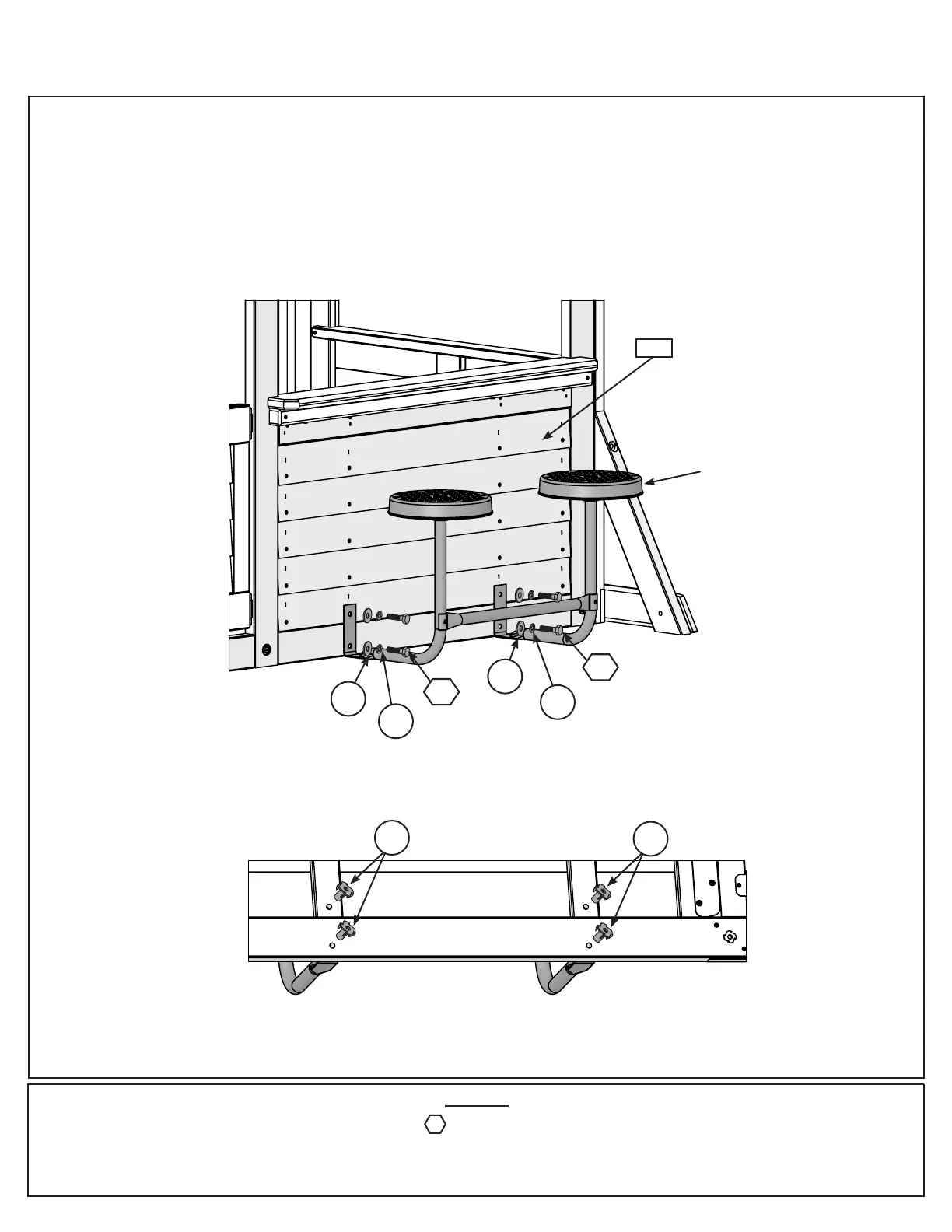 C: Attach Stool Seat Assembly to Front Wall Panel using 4 (H9) ¼ x 1- ¼” Hex Bolts (with lock washer, at wash-