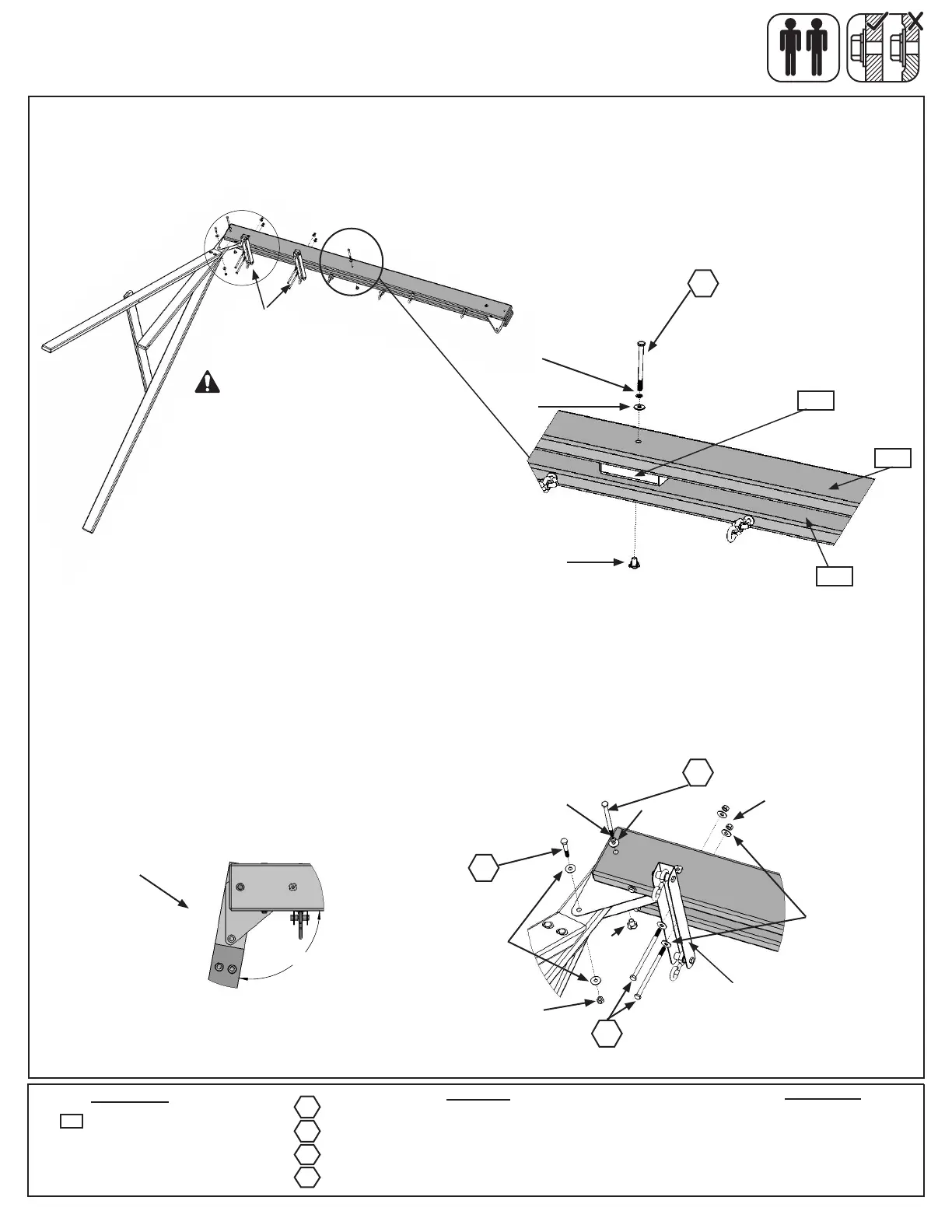 B: Attach Swing End Assembly to the side of the Swing Beam Assembly with the overhang (g. 5.3 & 5.4) using