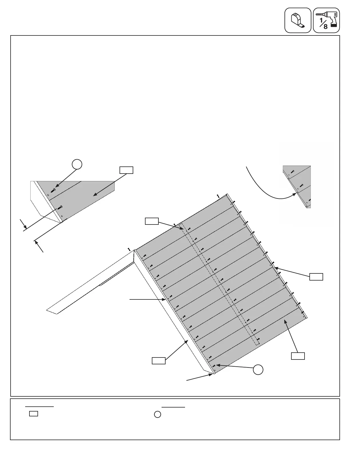 F: On one side of the assembly evenly space and attach 10 (1930) Siding, leaving no gaps, with 3 (S0) #8 x 7/8”