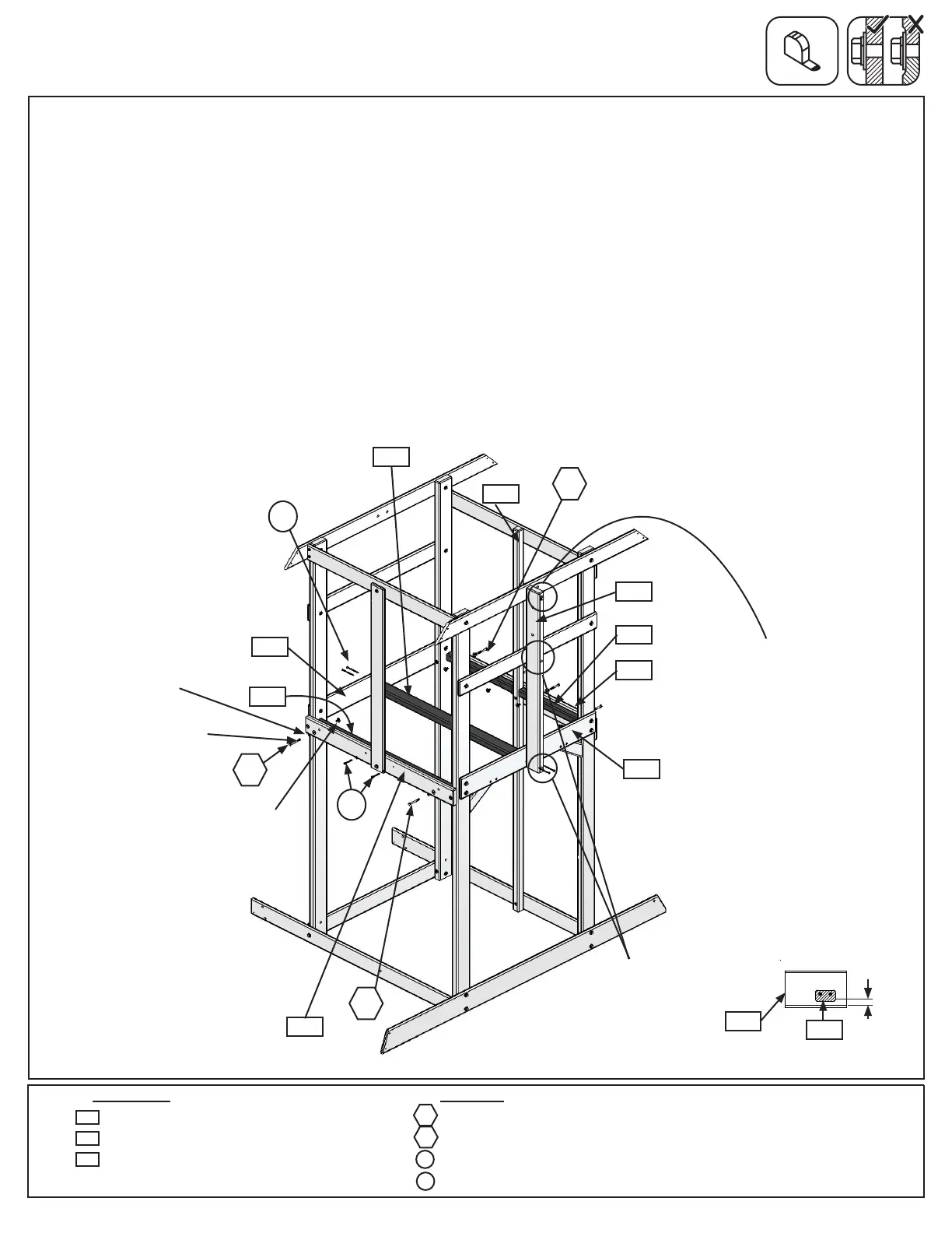 with 2 (H2) 1/4 x 2” Hex Bolts (with lock washer, at washer and t-nut) per board. (g. 12.1)