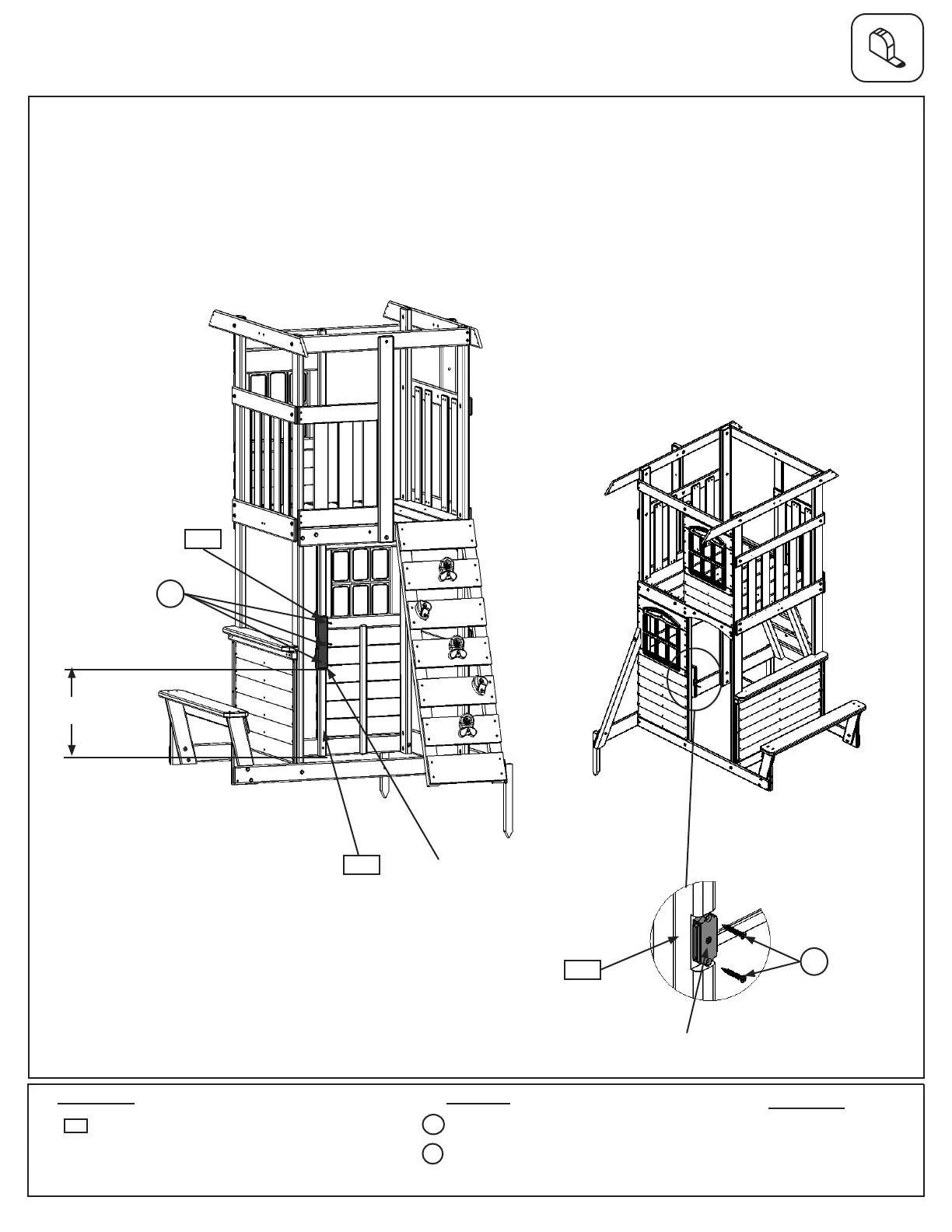 A: From inside the fort measure 16-7/8” up from the bottom of (2213) Front Divider and attach (2209) Door Stop