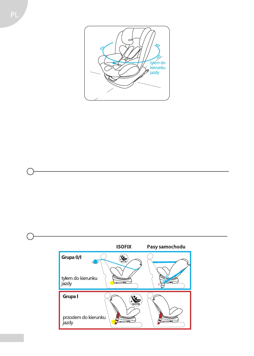 C, D. Ustawienie boczne – zakazane jest użycie tego ustawienia podczas podróży.