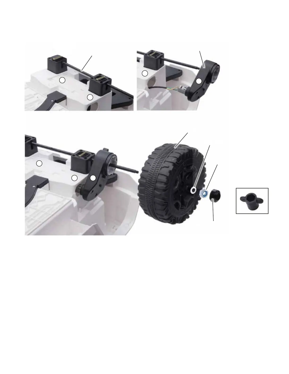 • Insert Motors (J) to each end of the rear axle. (the motor mark with “L” or “R”, pls. match to