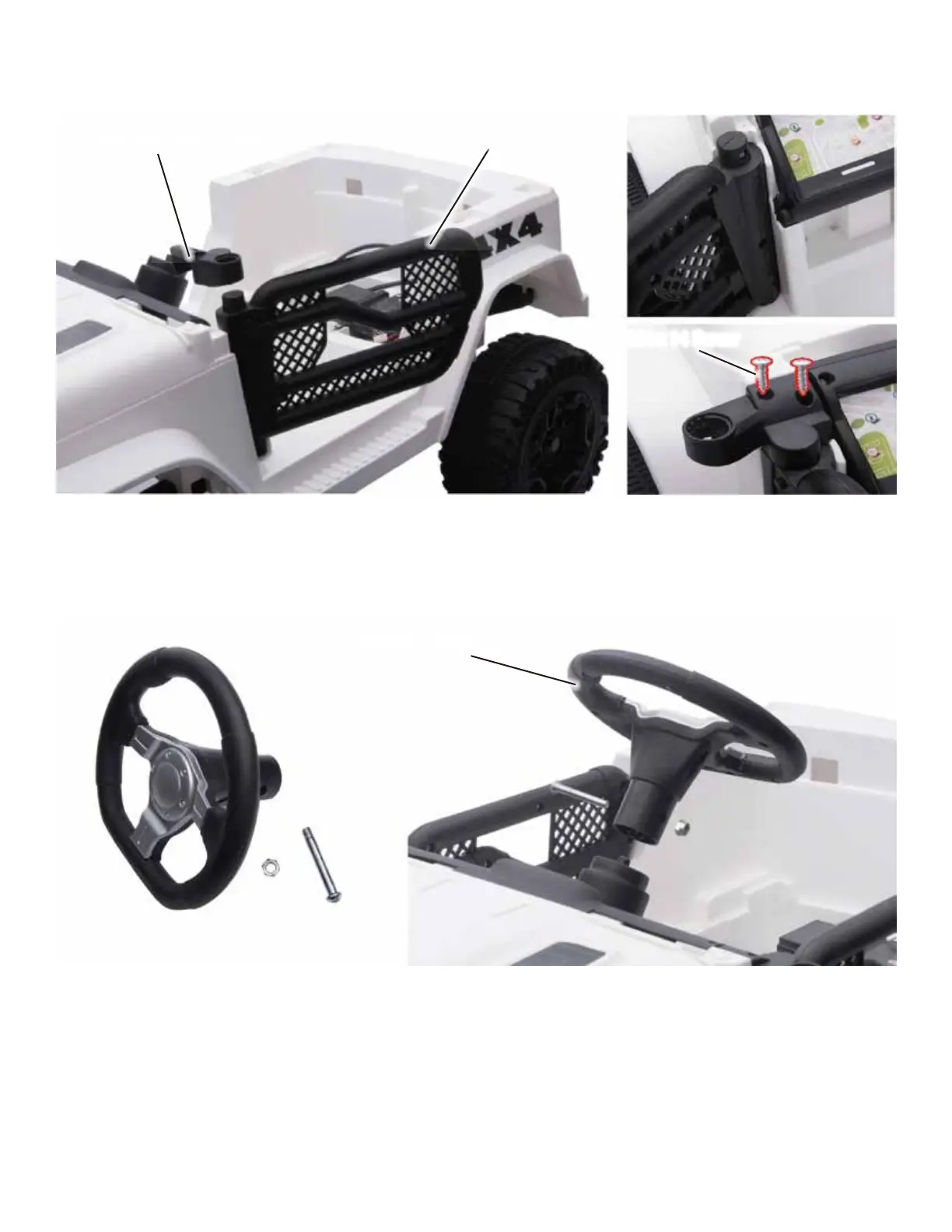 (2) Insert the steering wheel to the steering column and secure with the screw and nut.