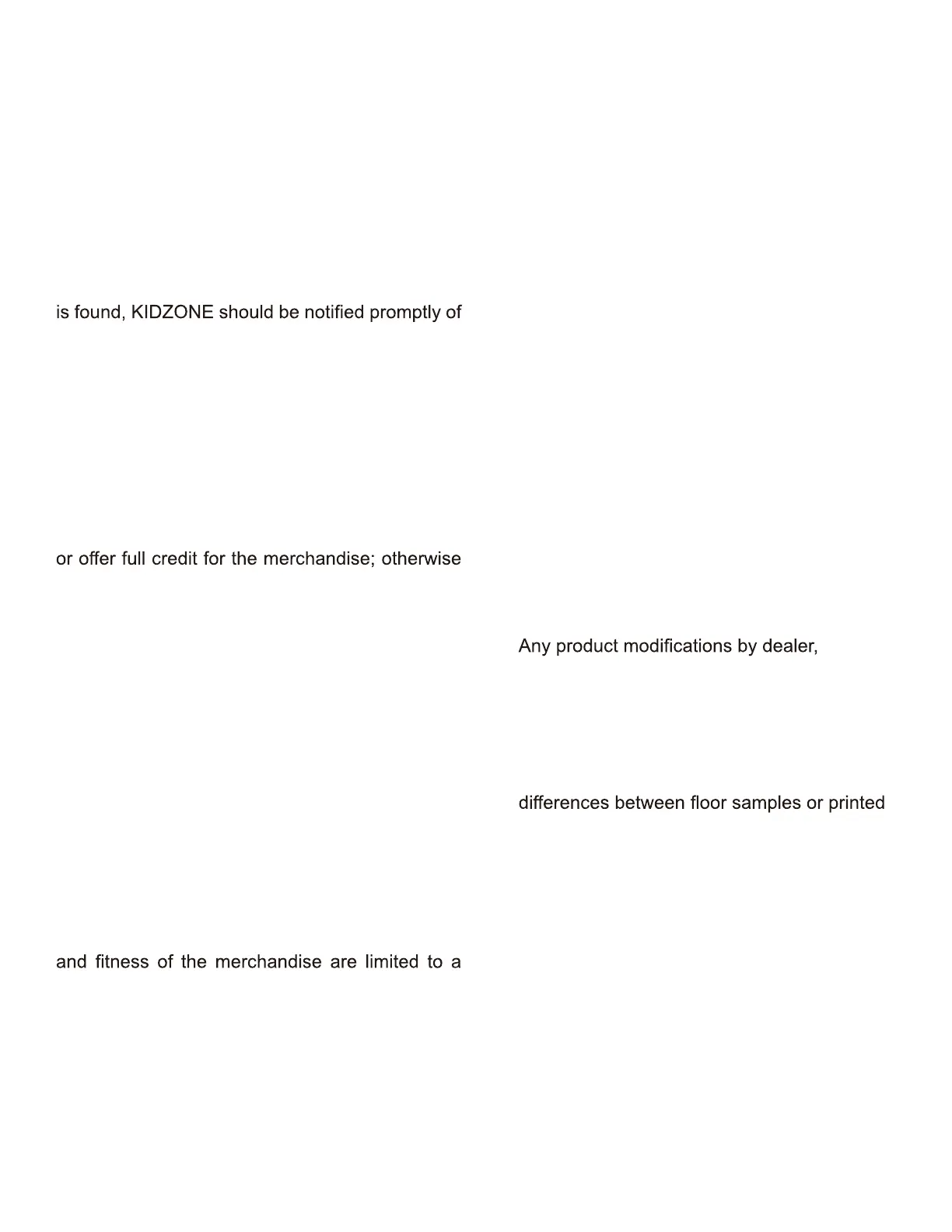 KIDZONE warrants that its merchandise are free