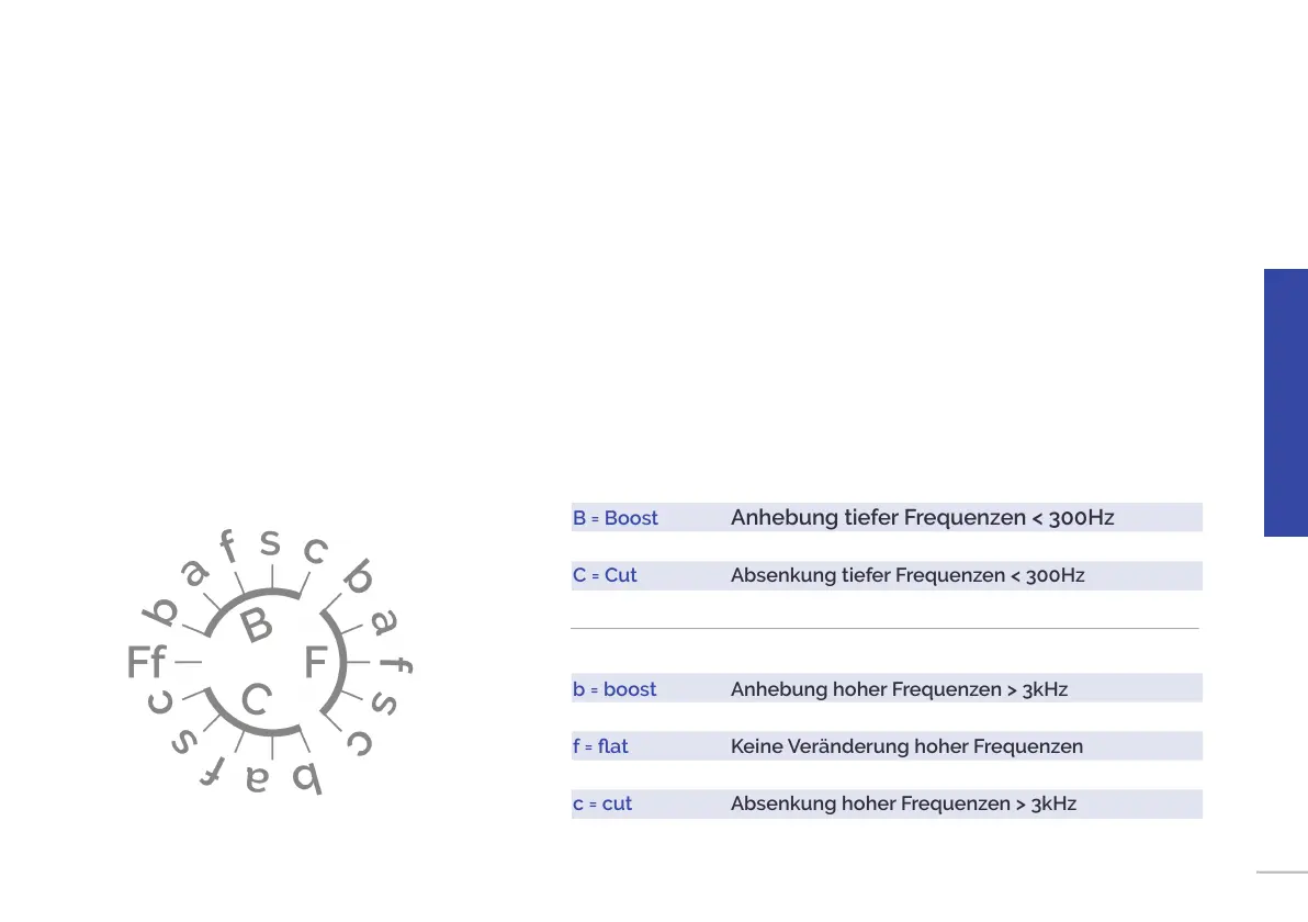b = boost Anhebung hoher Frequenzen > 3kHz