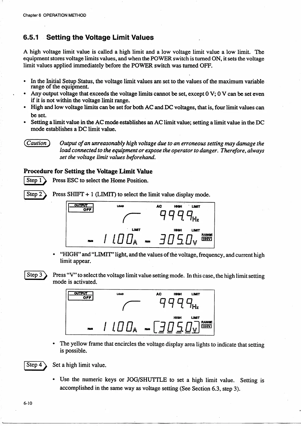 Kikusui PCR 2000L - Setting the Voltage Limit Values