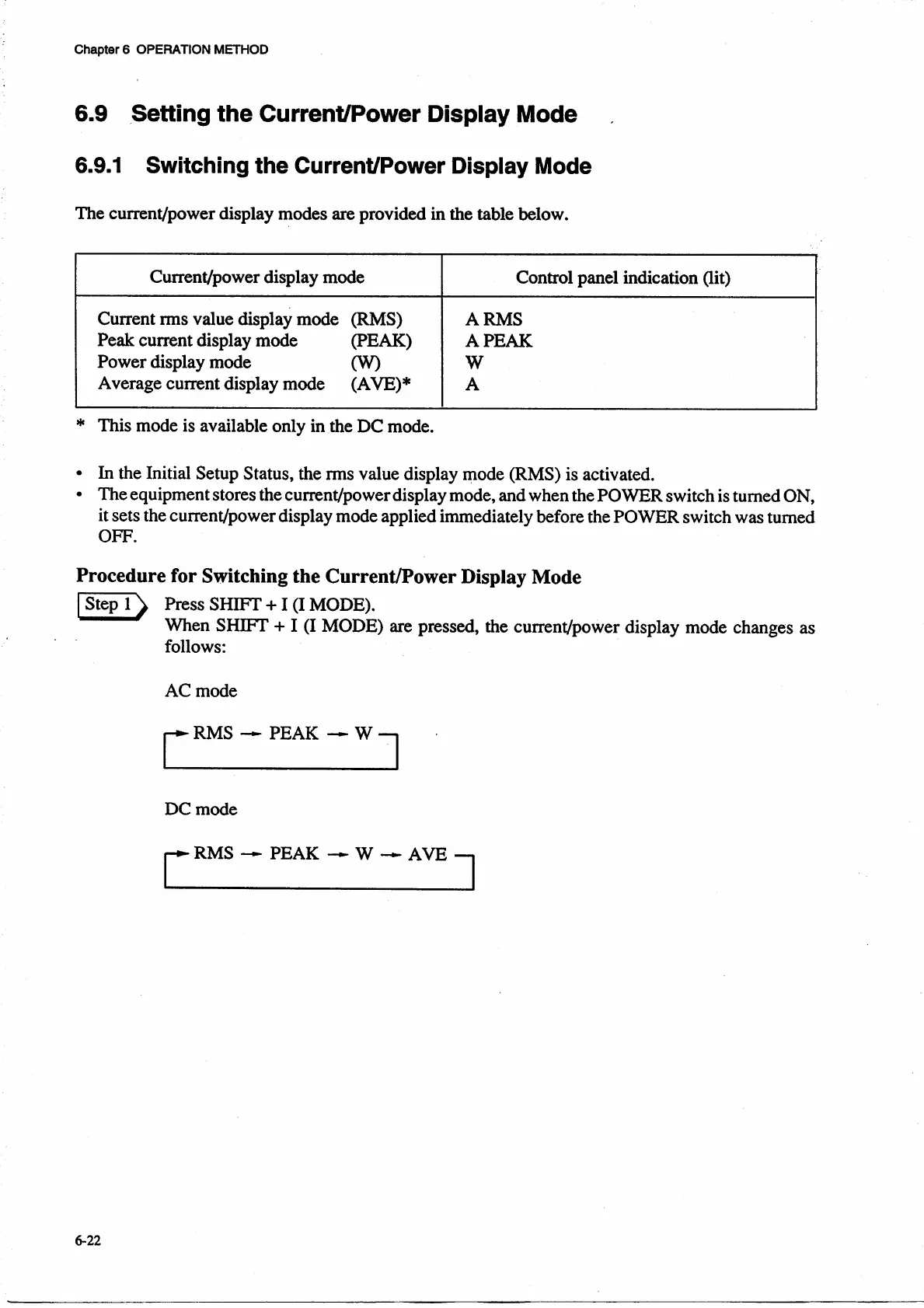 Kikusui PCR 2000L - Switching the Current;Power Display Mode