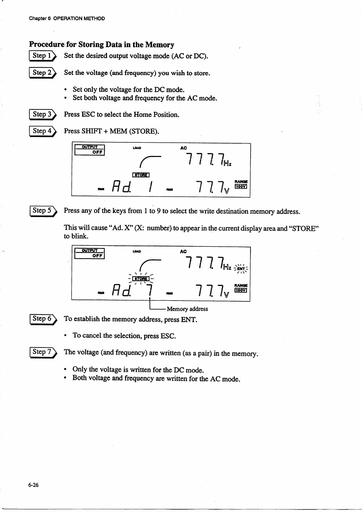Kikusui PCR 2000L - Procedure for Storing Data in the Memory