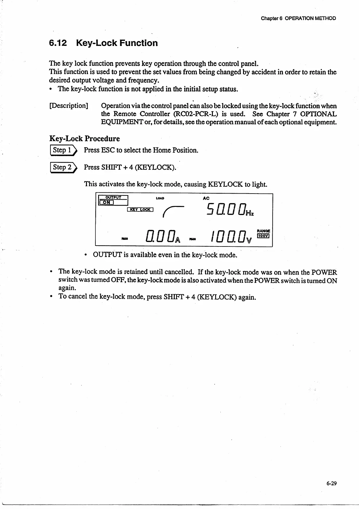 Kikusui PCR 2000L - Key-Lock Function;Procedure