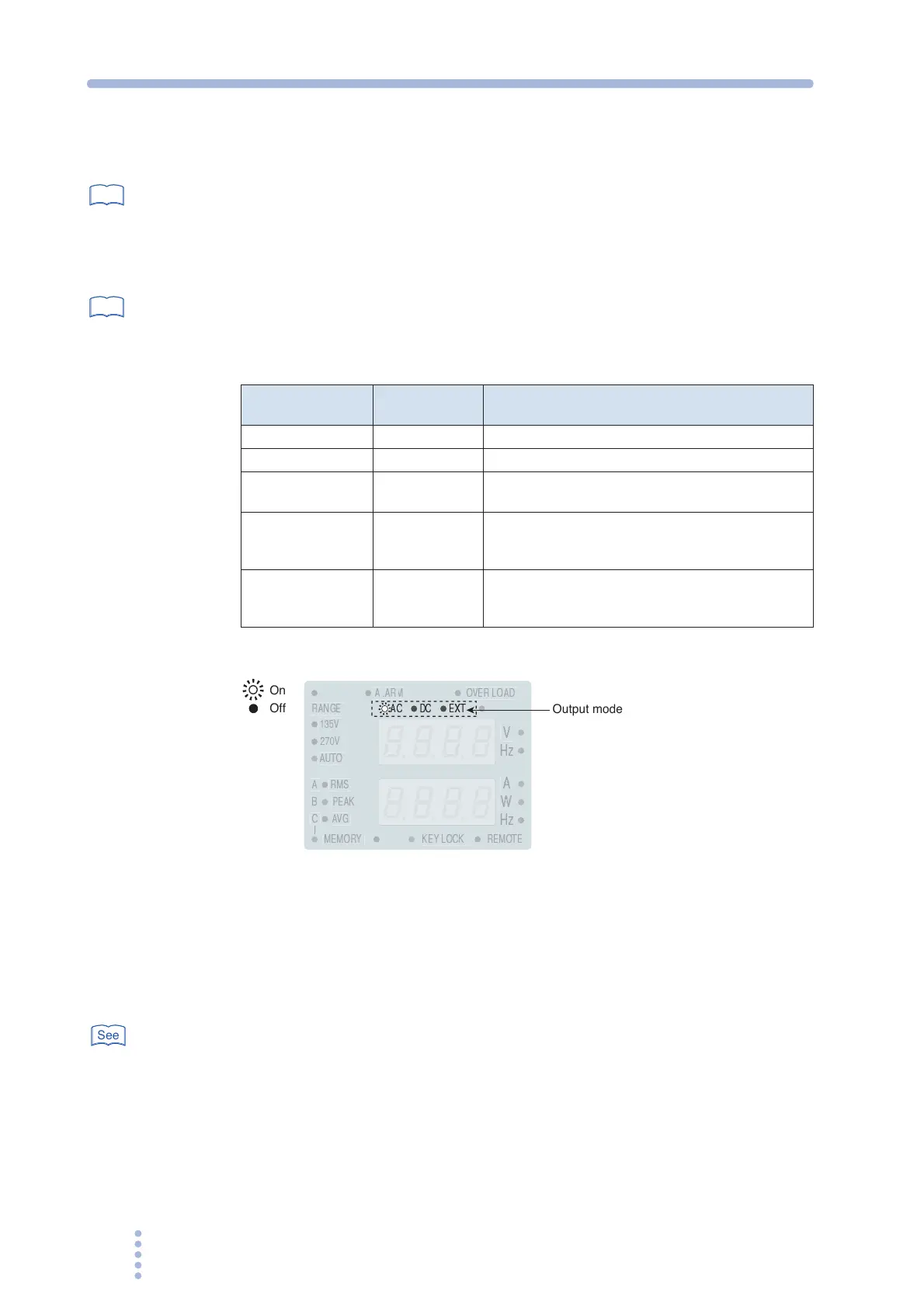 The output mode LEDs illuminate according to the mode as shown in Table 3-1.