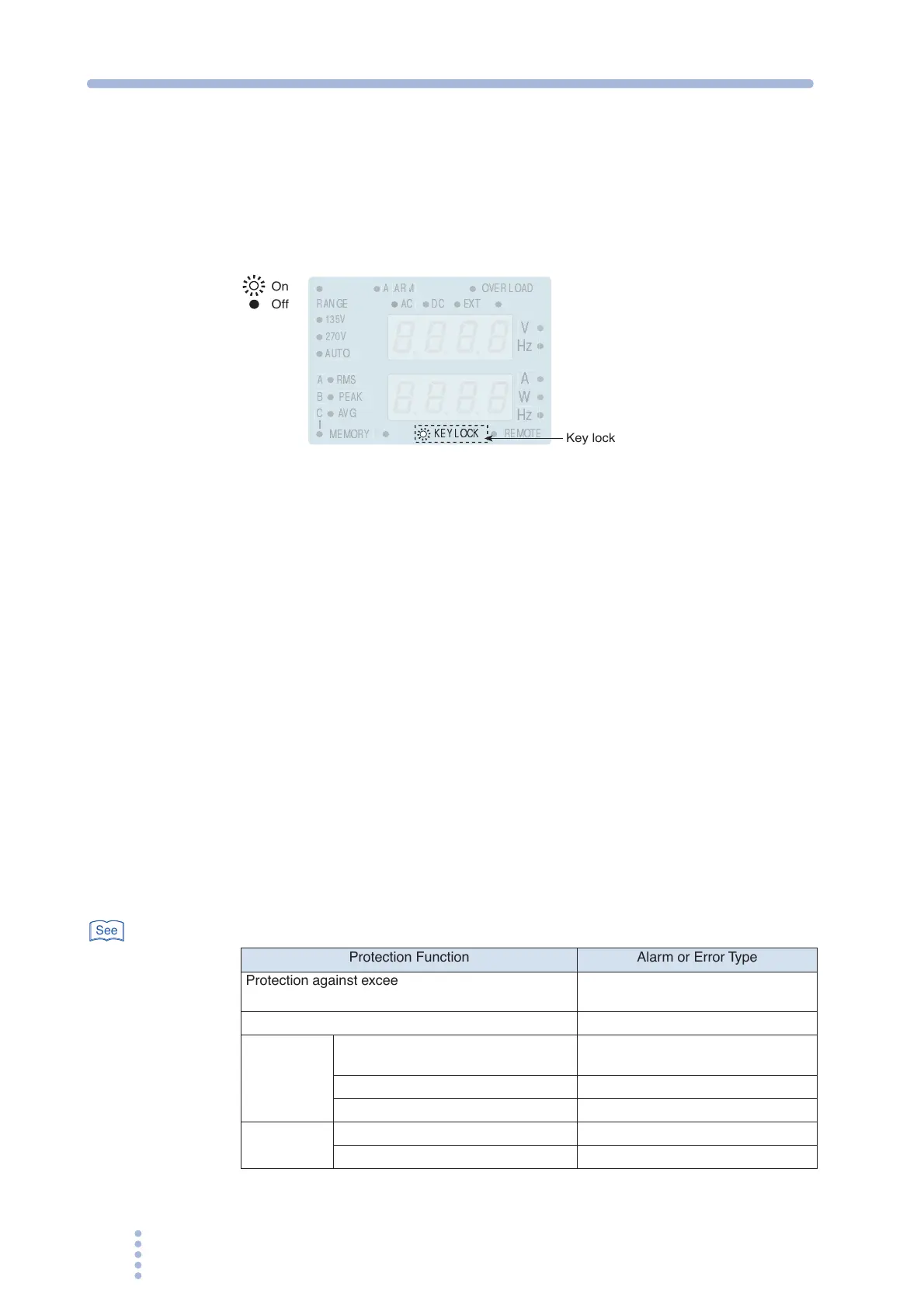 When the panel is locked, all keys other than the OUTPUT and KEY LOCK
