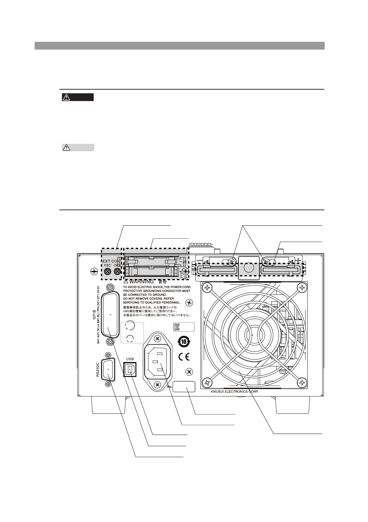 • Do not connect equipment to the load input terminals on the front and rear