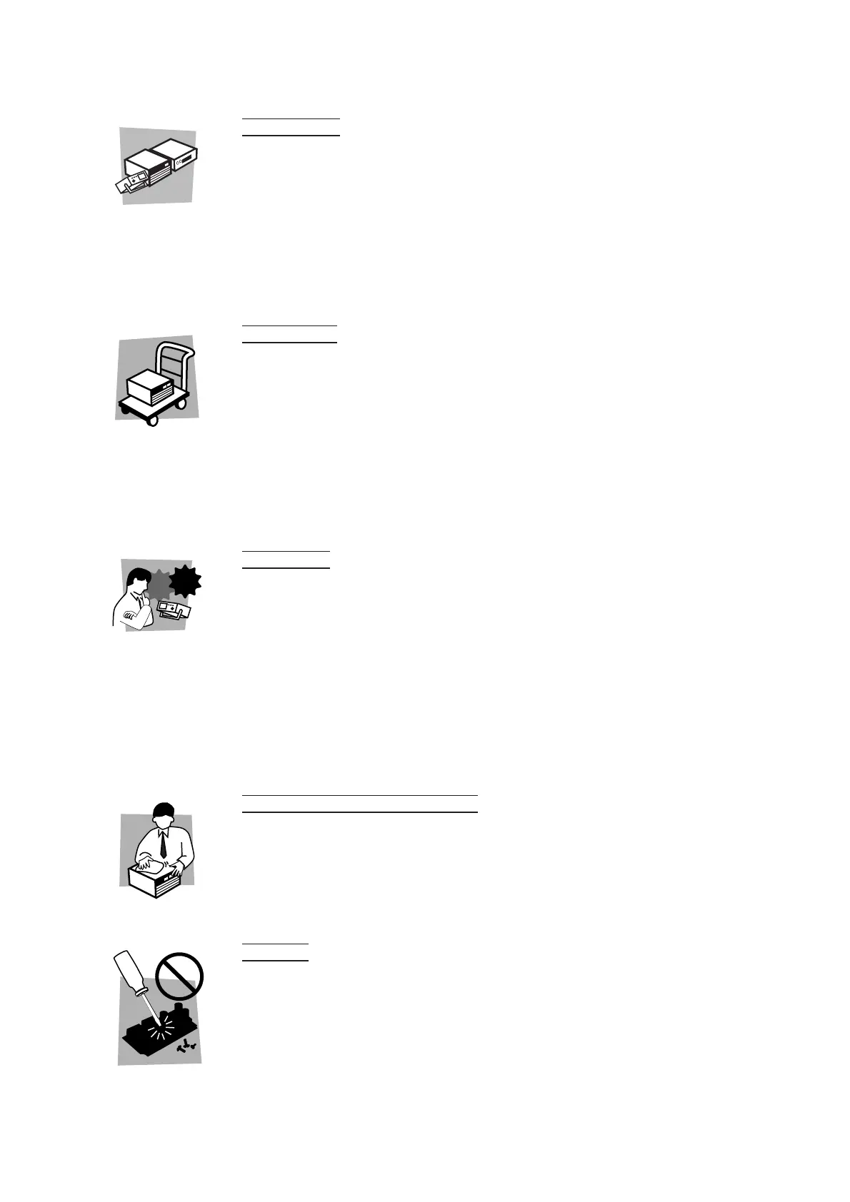 • When connecting the power cord to a switchboard, be sure work is performed by