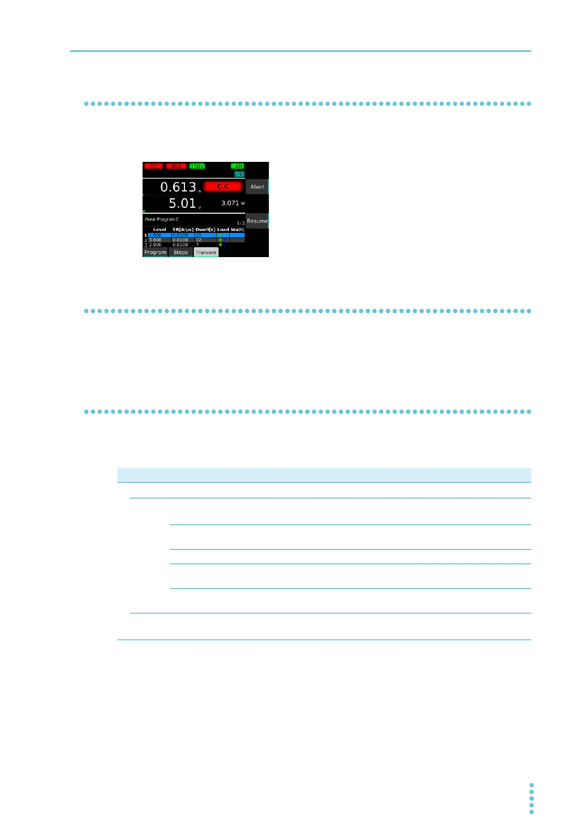 Pressing Abort during sequence execution stops the sequence execution in progress (if the load is on, it