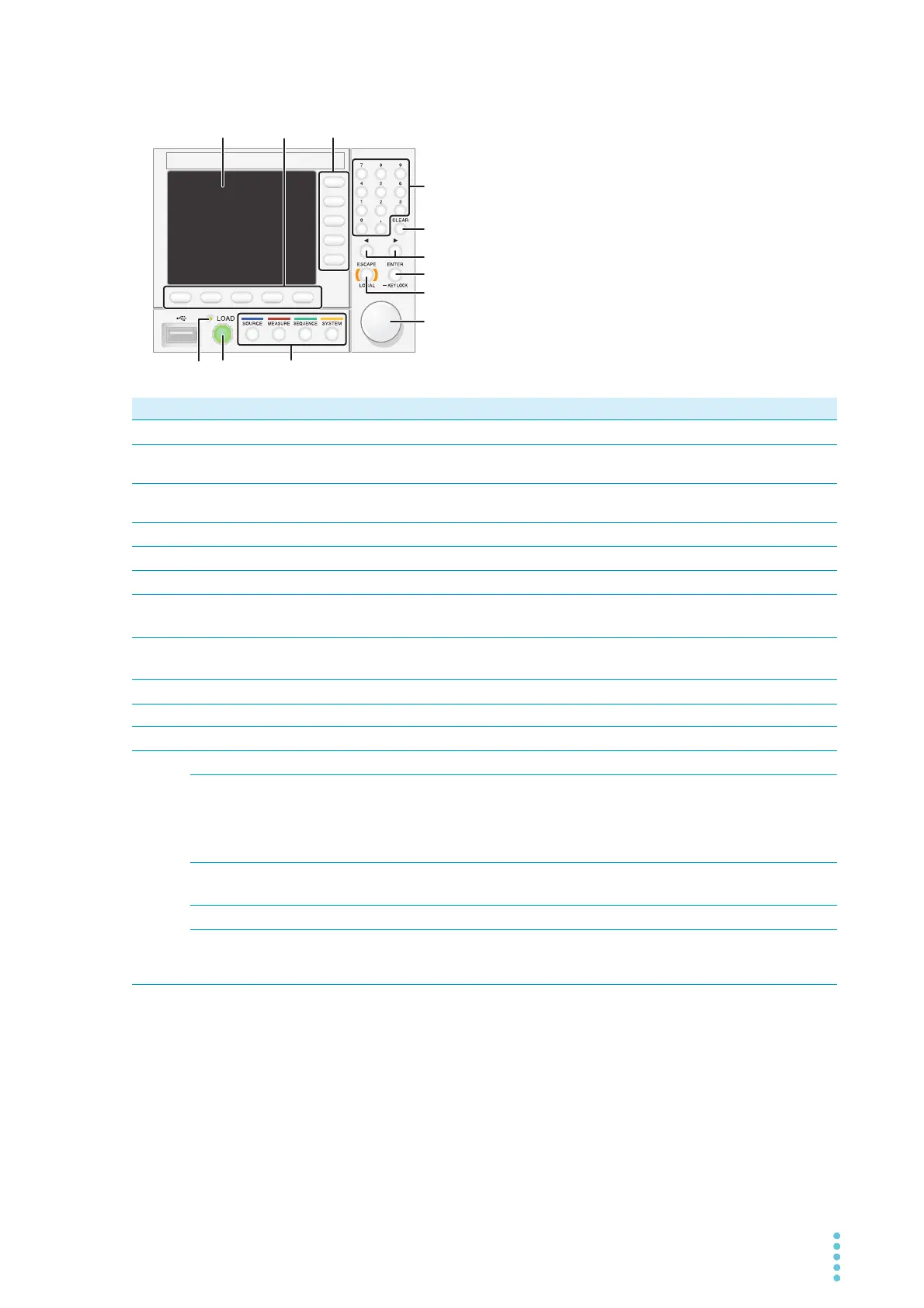 SOURCE key Operation mode and load value settings, voltage and current range settings,