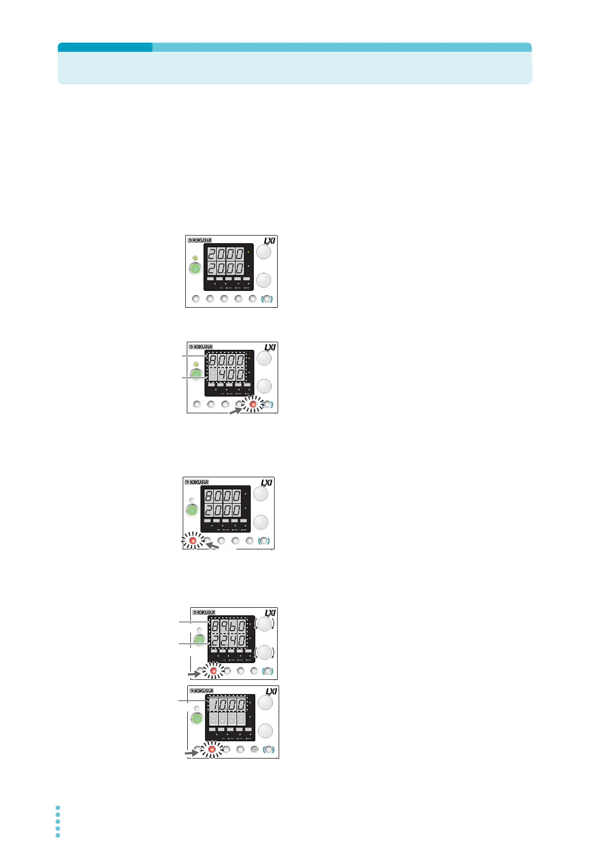 Press SET to light the key and display the present output volt-