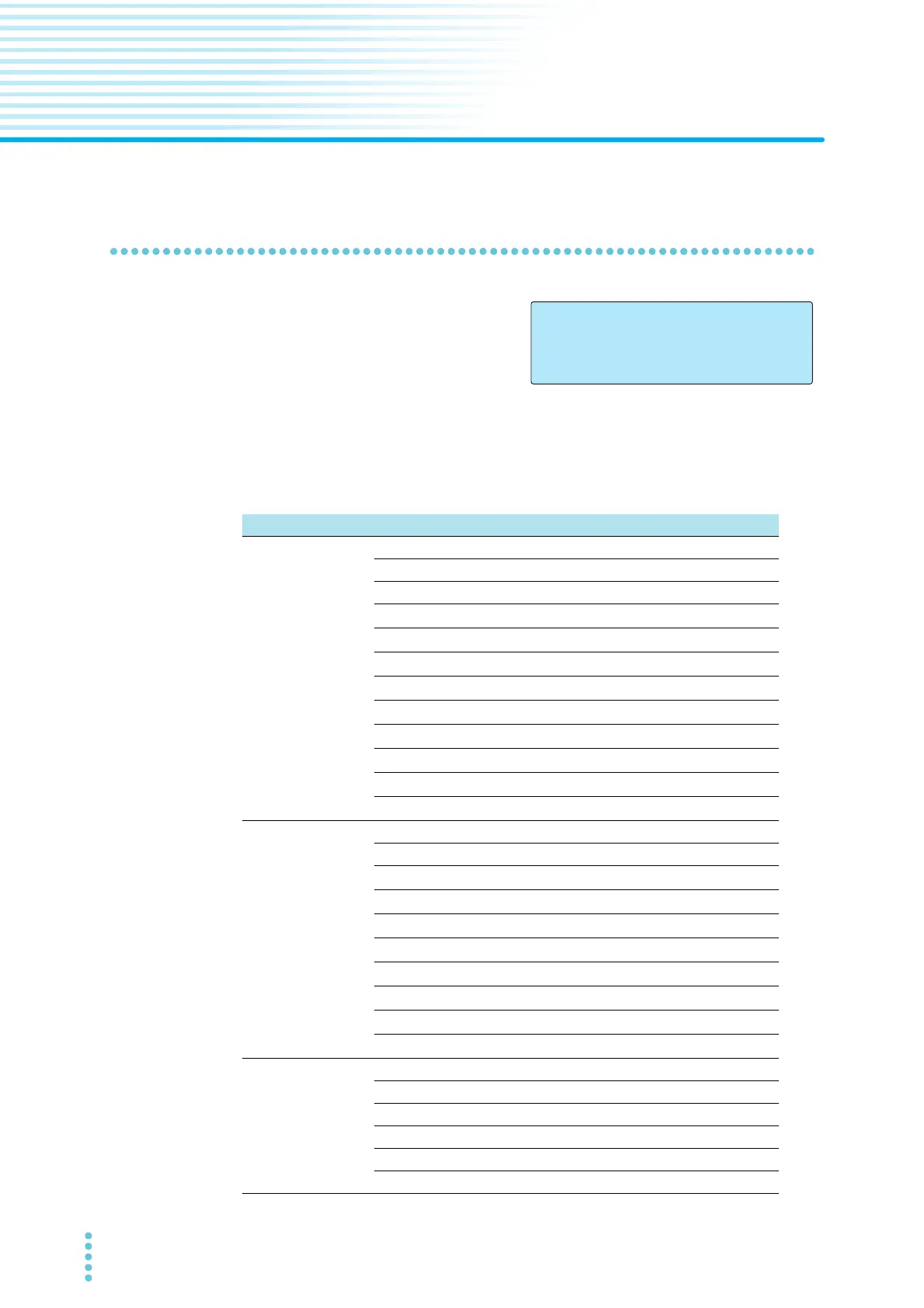 List of Default Settings