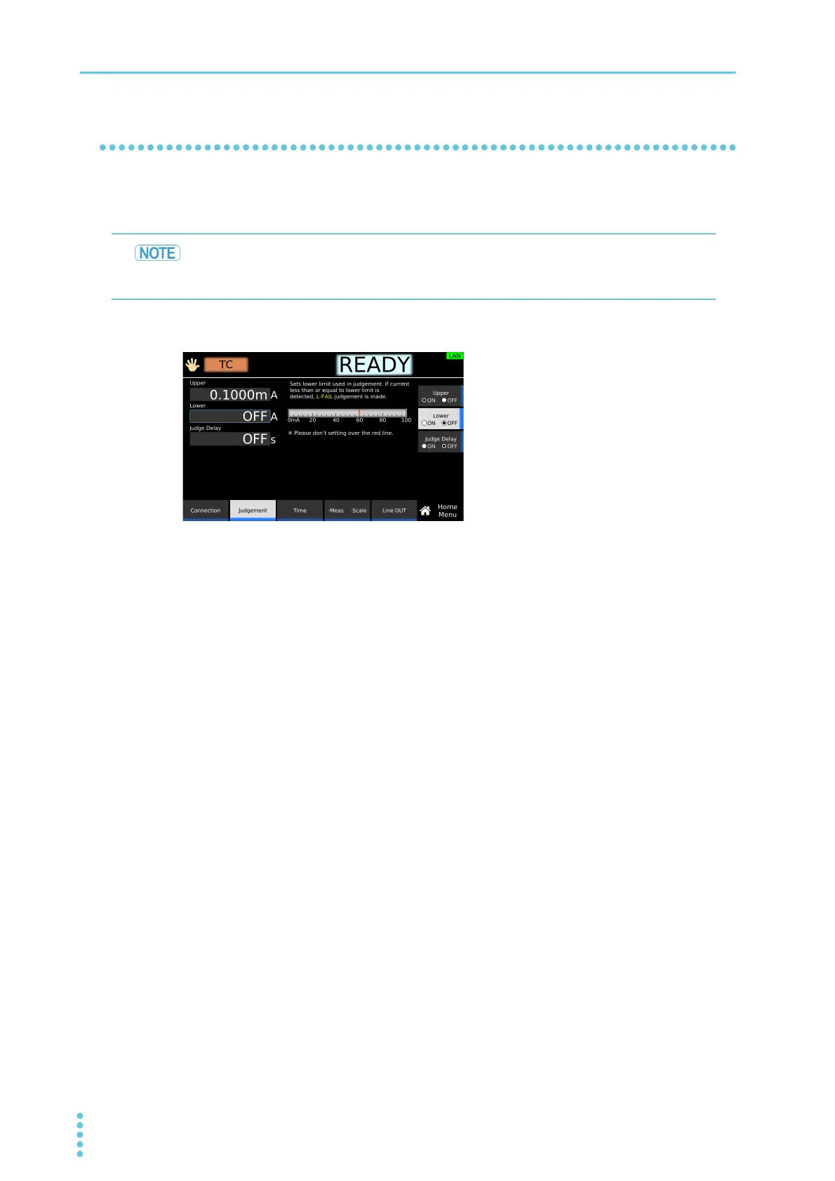 limit judgment (L-FAIL) results. To disable lower limit judgment, set Lower to off.