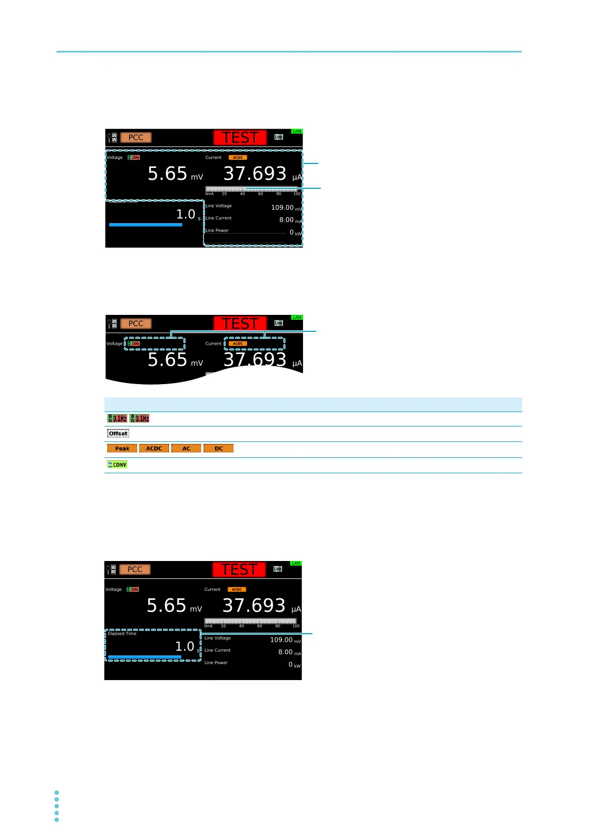Icons indicating the test conditions appearing during testing.