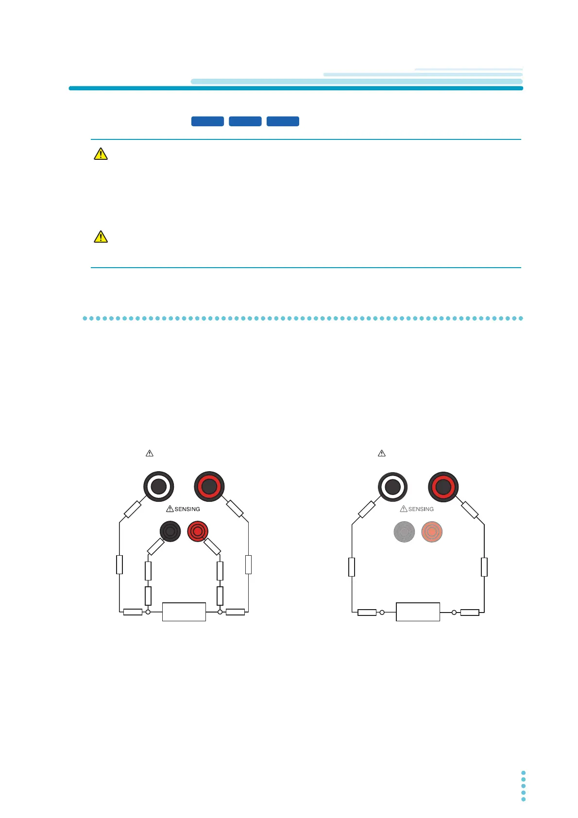 When four-terminal wiring is not possible such as when using test leads other than those supplied with the