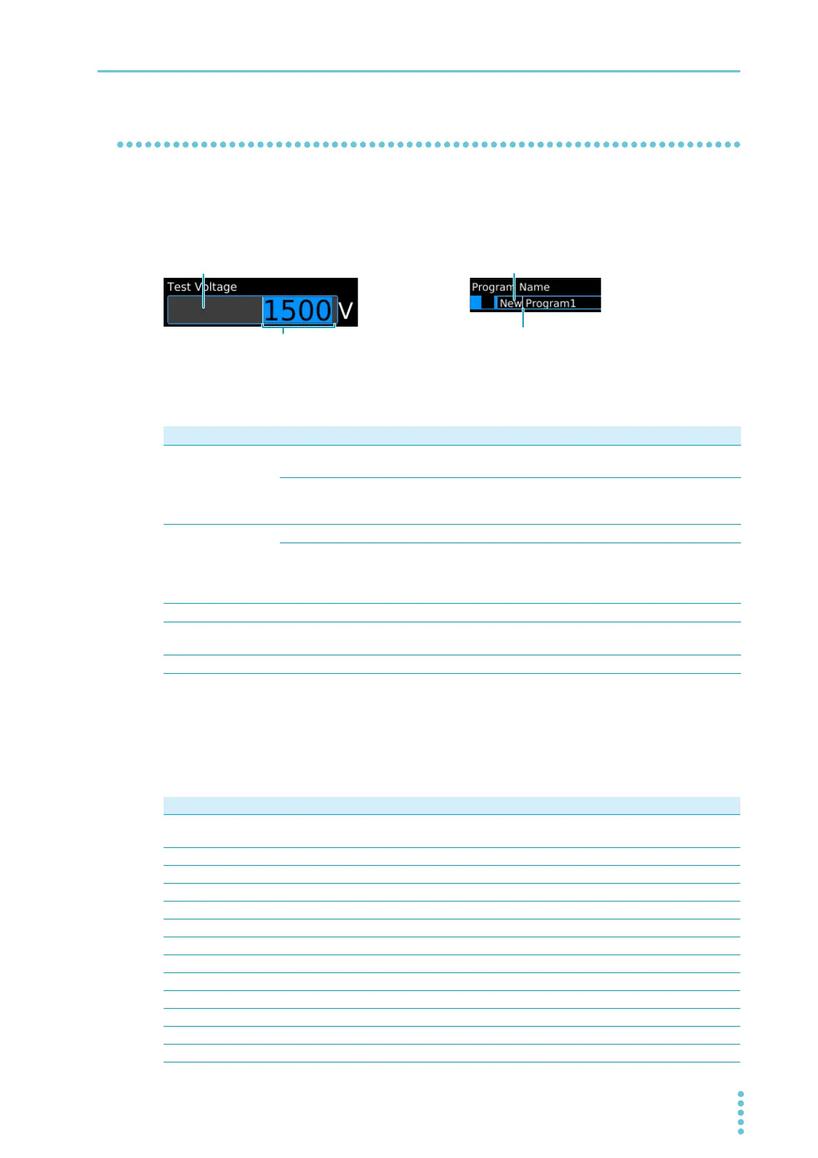 You can enter numbers and characters in input areas from the front panel or external keyboard. Number