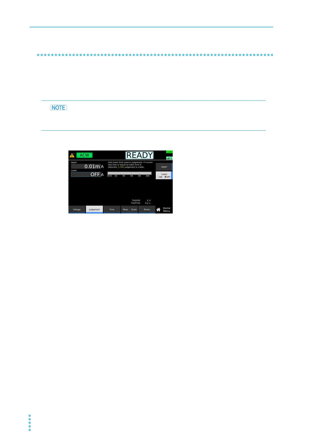 measured after the voltage reaches the test voltage, lower limit judgment (L-FAIL) results. To disable lower
