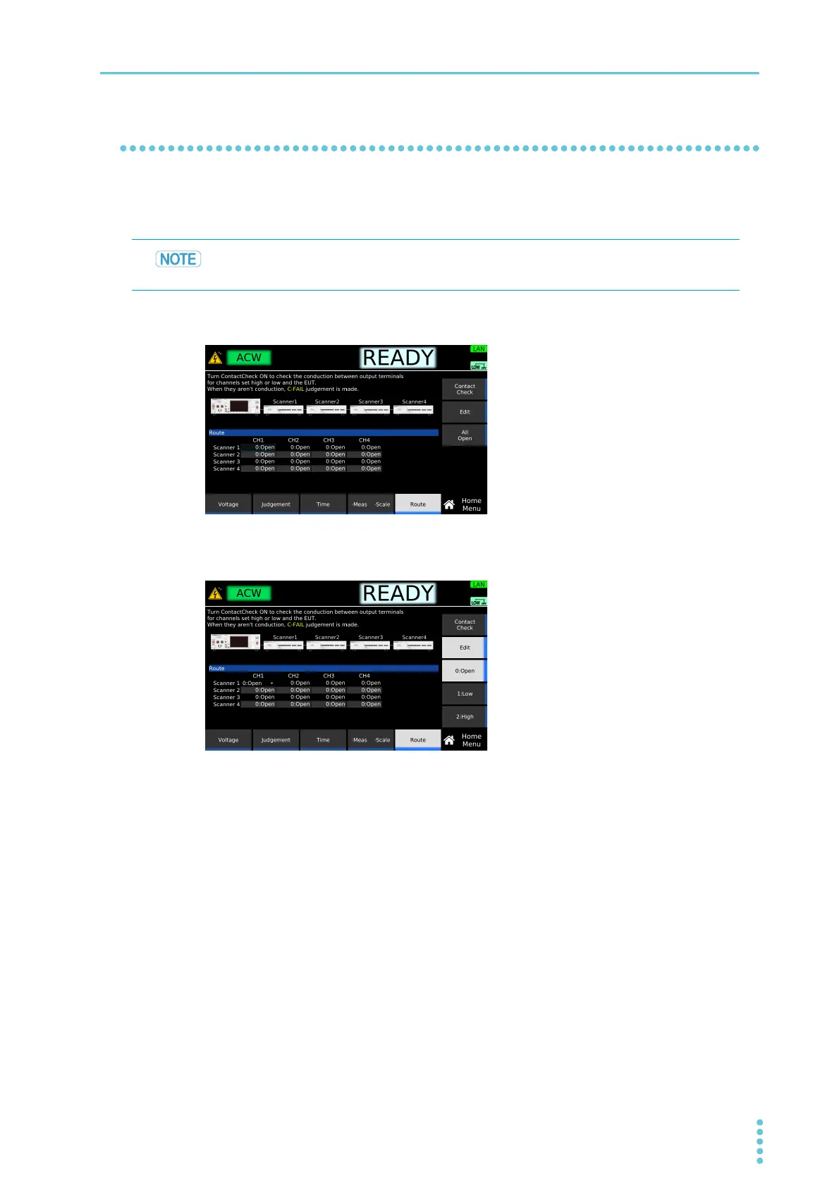 Set each scanner channel connection to High, Low, or Open.