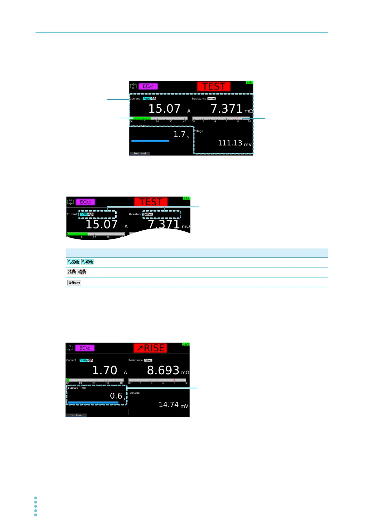 While the current is rising, “RISE” is displayed along with the elapsed time. The remaining rise time is dis-