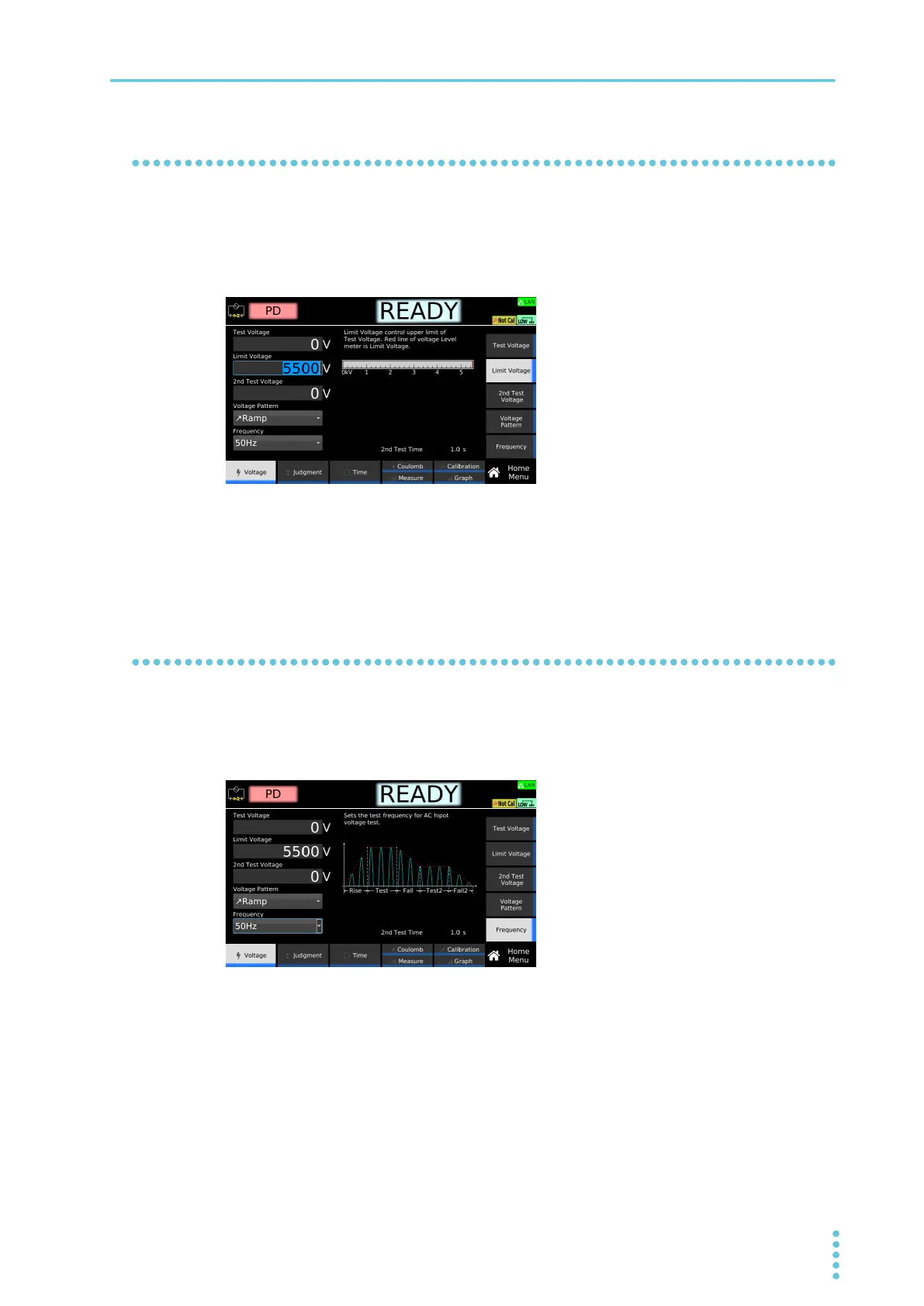Set the test voltage frequency to 50 Hz or 60 Hz.