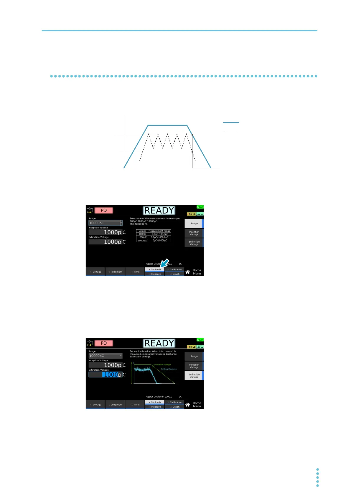 Setting range (100 pC range): 10.0 pC to 100.0 pC