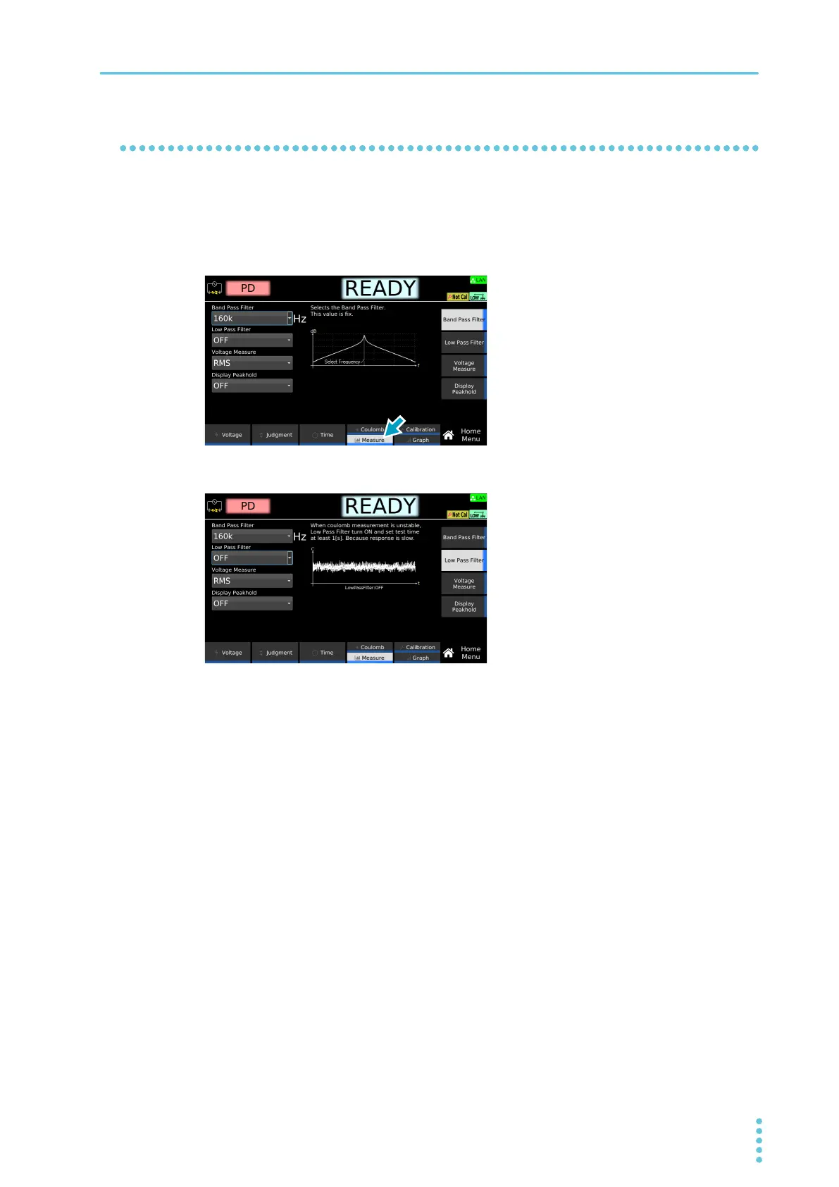 When Low Pass Filter is set to ON, the noise generated by the AC power supply can be suppressed.
