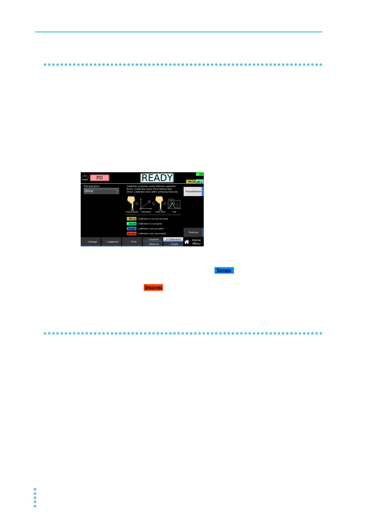 When precalibration fails (Unsuccess), check if the capacitance of the EUT does not exceed 10 nF.