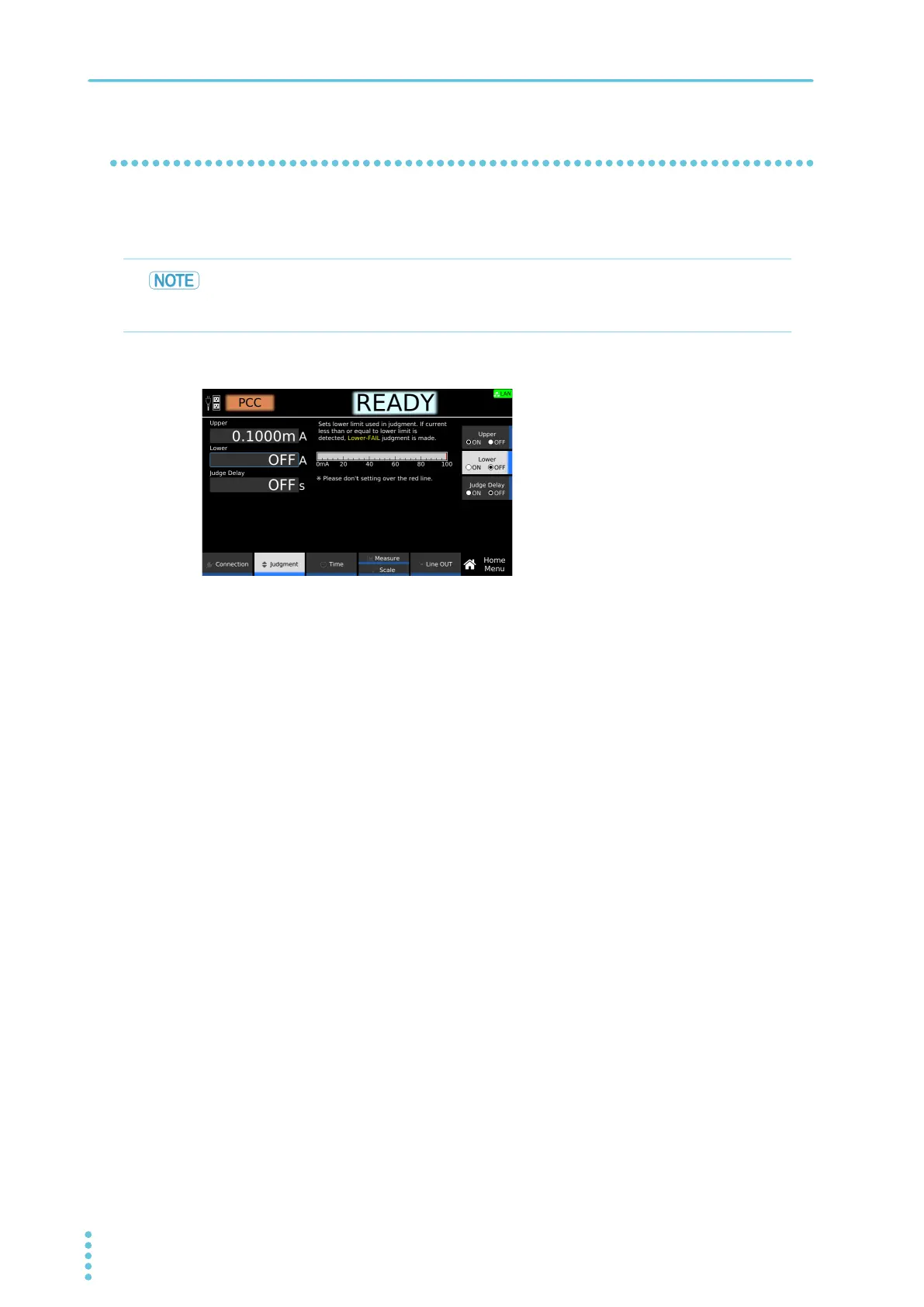 limit judgment (Lower-FAIL) results. To disable lower limit judgment, set Lower to off.