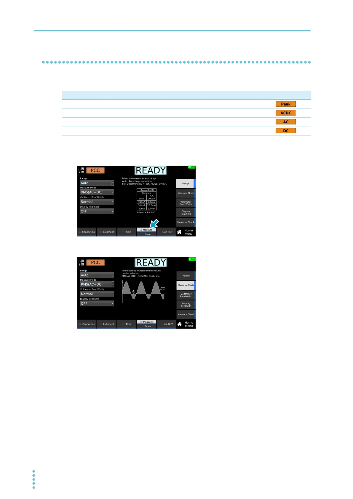 Set the current measurement mode. An icon appears during testing according to the setting.