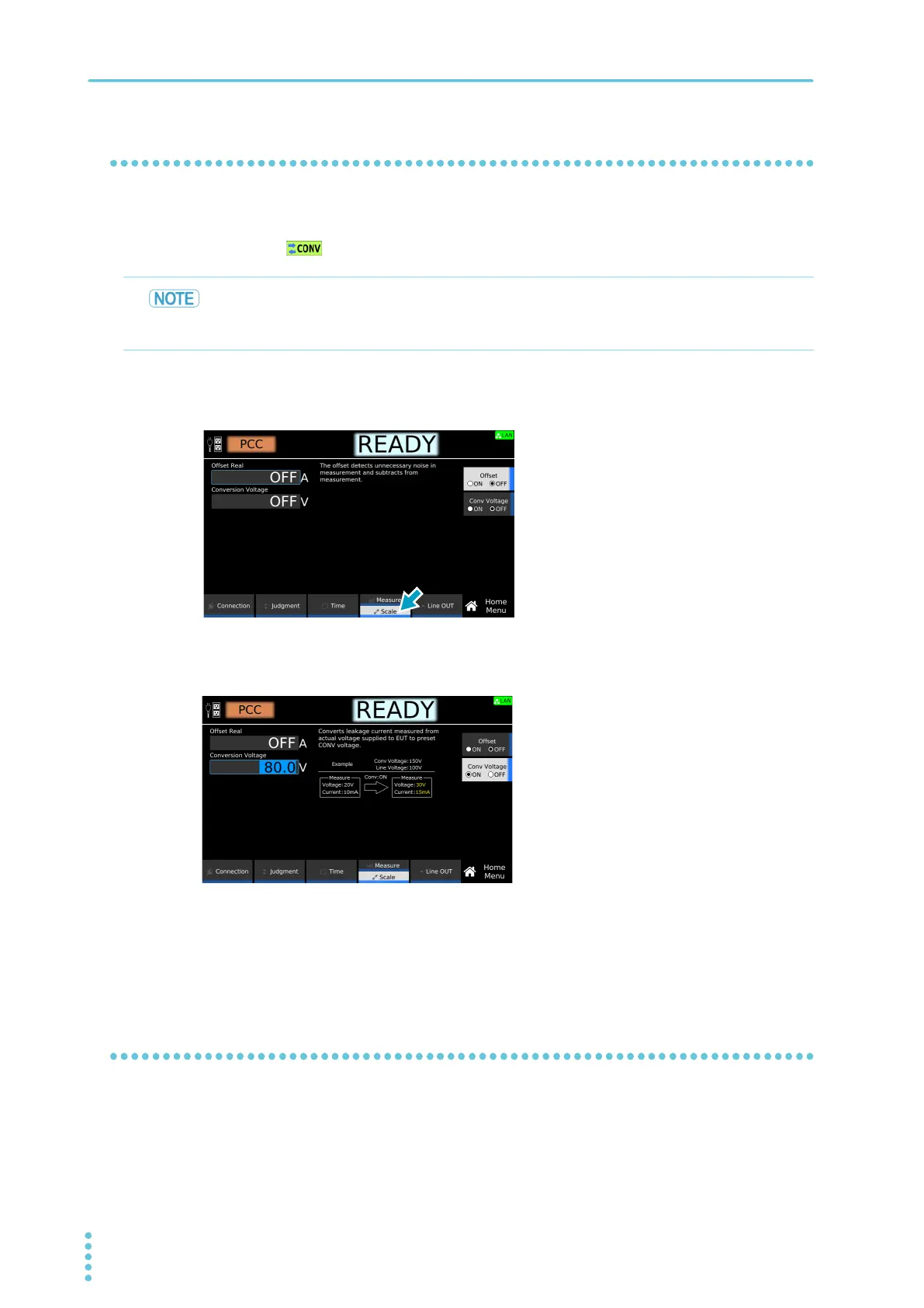 voltage supplied to the EUT and the measured current. Judgment is also performed on the converted