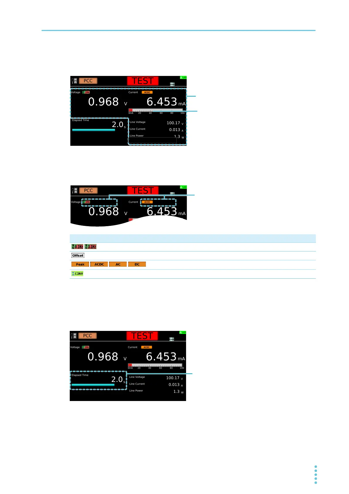 Measure Mode setting (Peak/RMS (AC+DC)/RMS (AC)/DC).