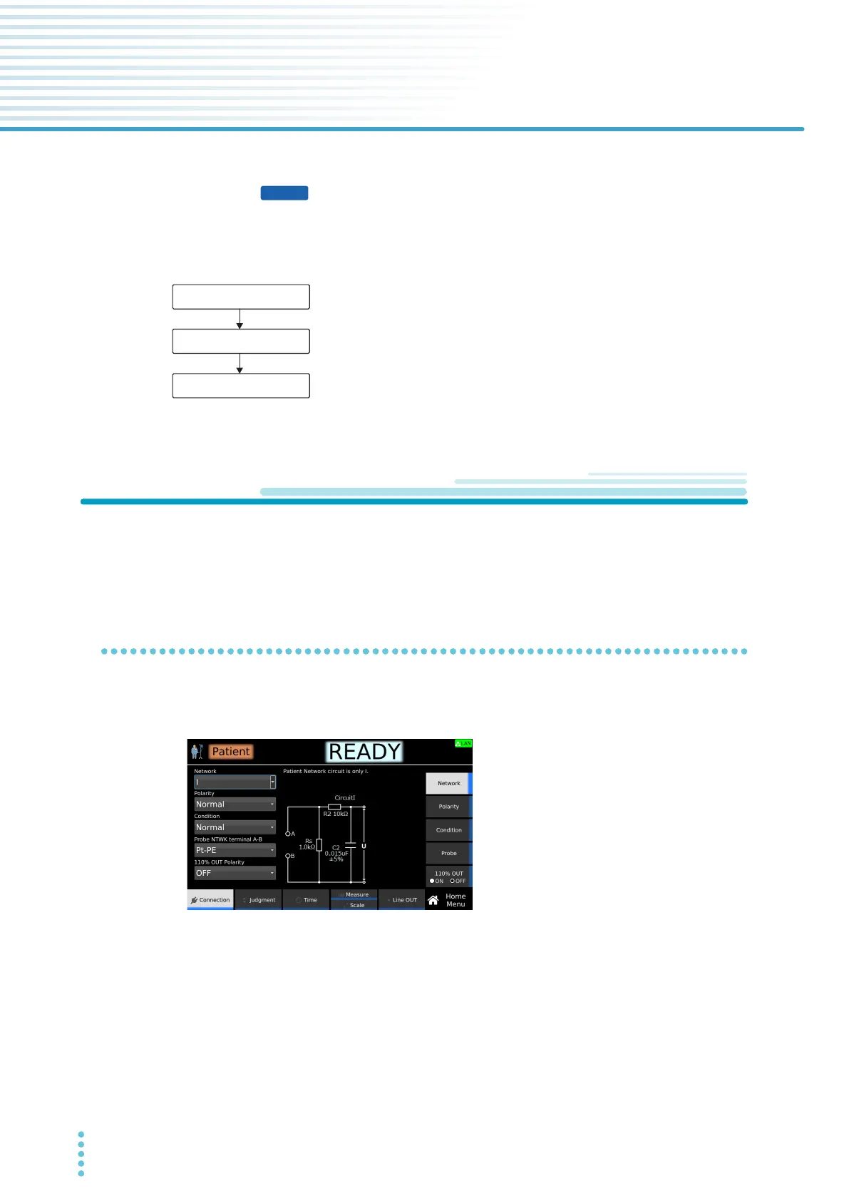This section describes the test conditions of patient leakage current (Patient) tests and how to set the