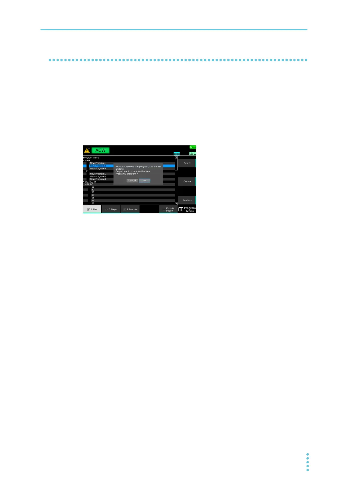 You can delete a program that you created with a name of your choice. Programs under “SIGNAL I/O”