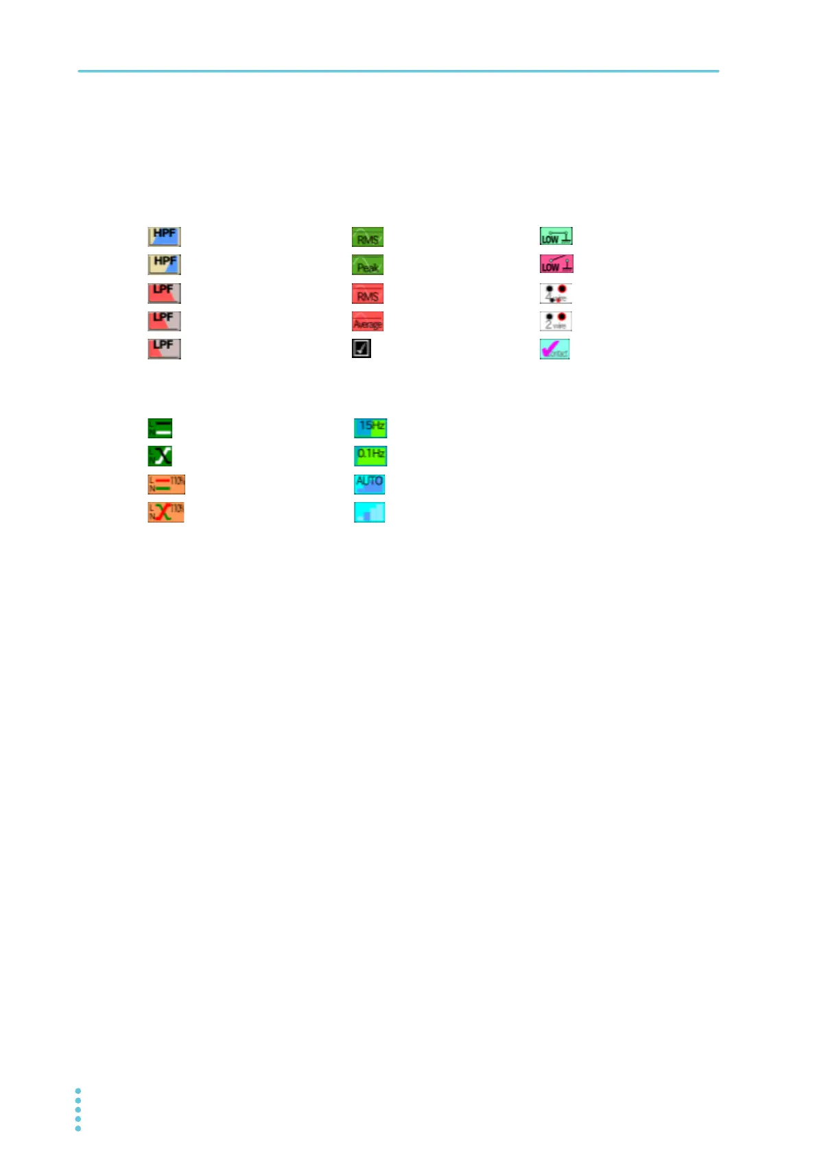 The icons listed below are used to show some of the test condition settings.