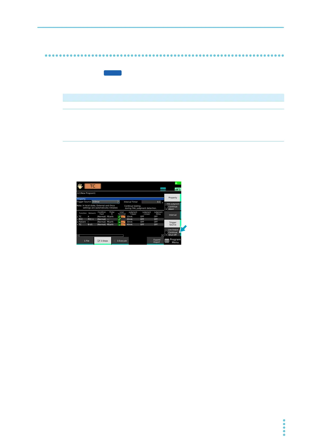 Continue The power supply to the EUT continues even when a step is completed.