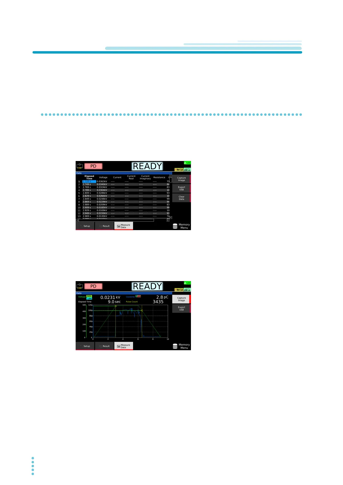 You can save and view the values and the captured image of the most recent test. They are deleted when
