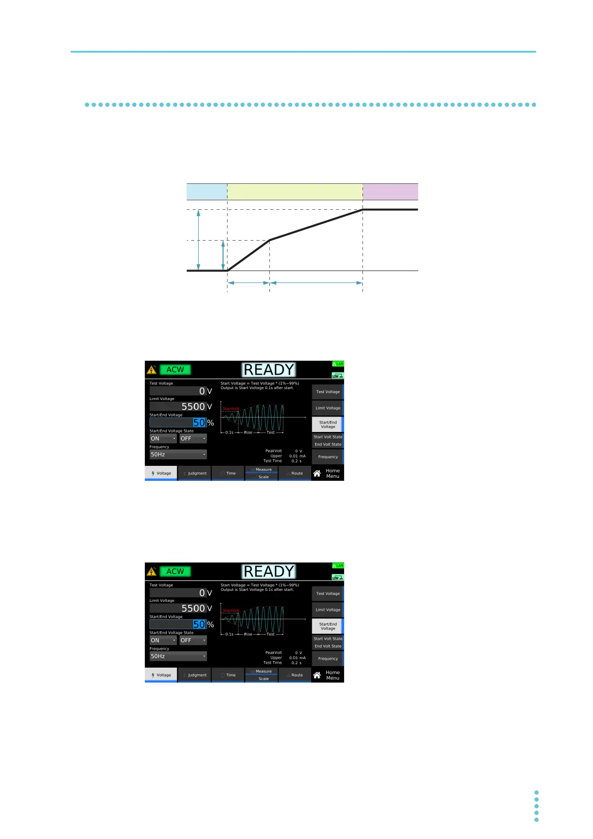 Set the voltage 0.1 seconds after the START switch is pressed as a percentage of the test voltage. If you