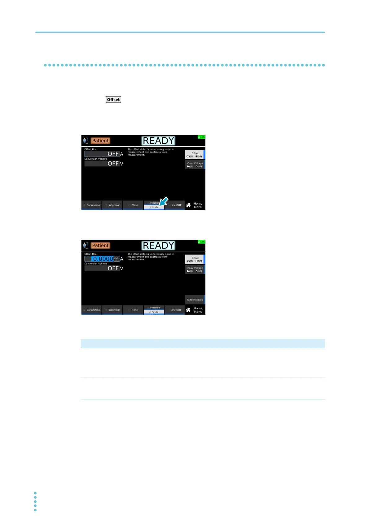 environment or the like. If Offset is set to on, such currents, which lead to errors, can be canceled.